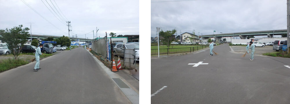 資材置場の周りを清掃活動。